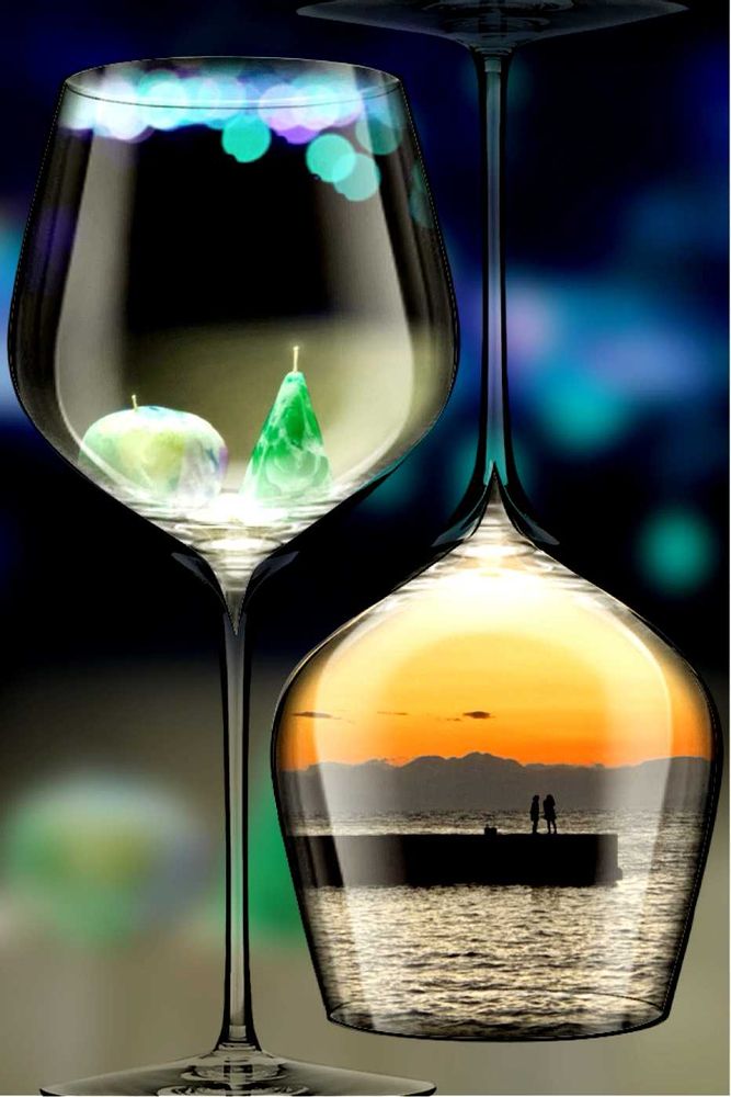 ①〜初めて作ったCANDLE✨🕯🕯✨(円錐形とハート形)とギリギリセーフで間に合った海辺の夕焼け🌅をグラスに入れてみました。