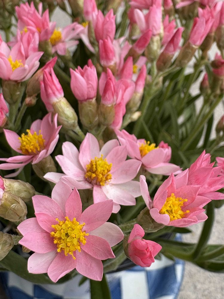 「花持ち抜群、ドライフラワーに最適」という謳い文句で店頭に並んでいたヘリクリサム ローズビューティ。別名ムギワラギク。触るとカサカサ言ってる〜😃💕