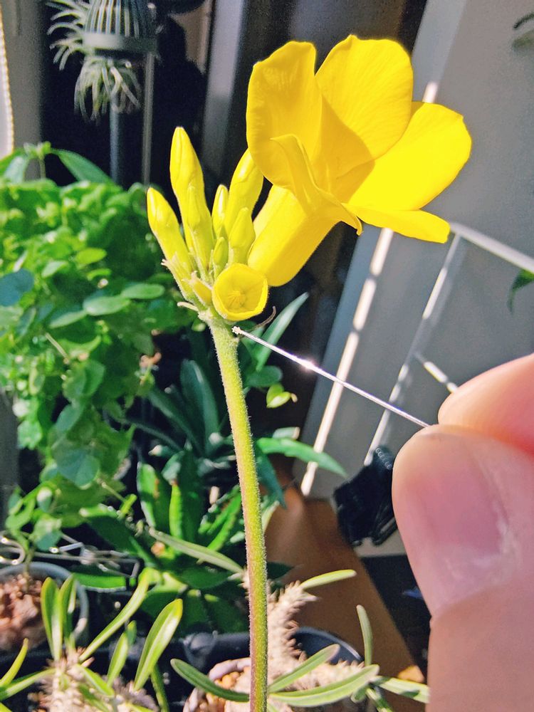 自家不和合性と言って他の個体と受粉させないと種ができないそうなんですが、沢山咲いてるので同一個体で受粉作業してみた。