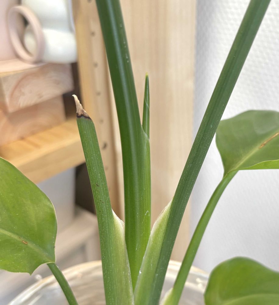 次の新芽は当分先かなぁと思っていたら出てきてる!おととい水あげた時居なかった