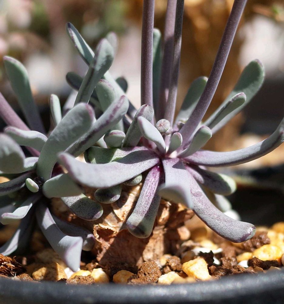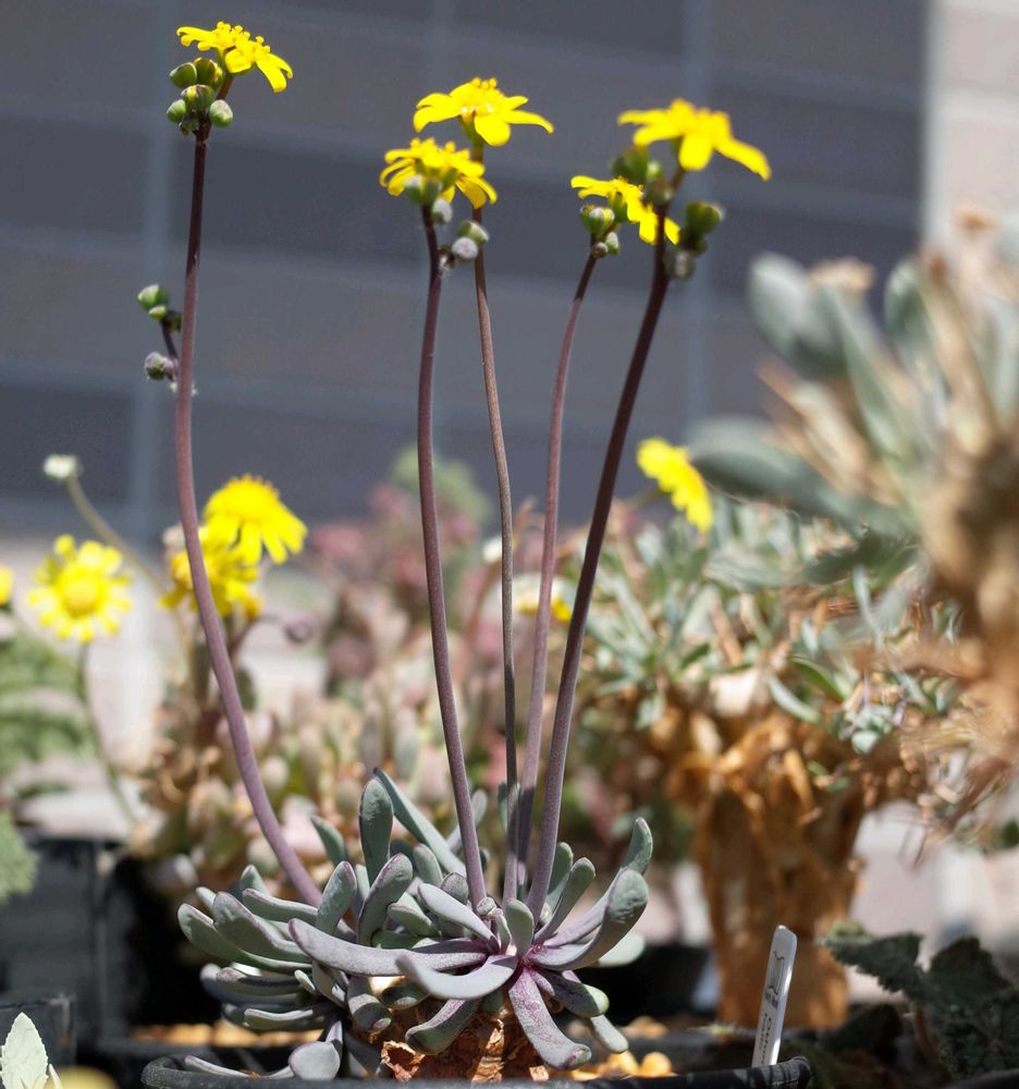 紫の肉厚の葉、大木のような塊根、すっと伸びた黄色い花、なんとも魅力的♪