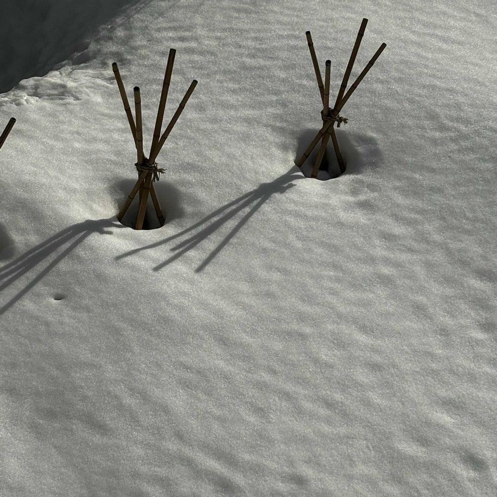 ⑤ 裏の畑の雪は まだまだこんなです❄️