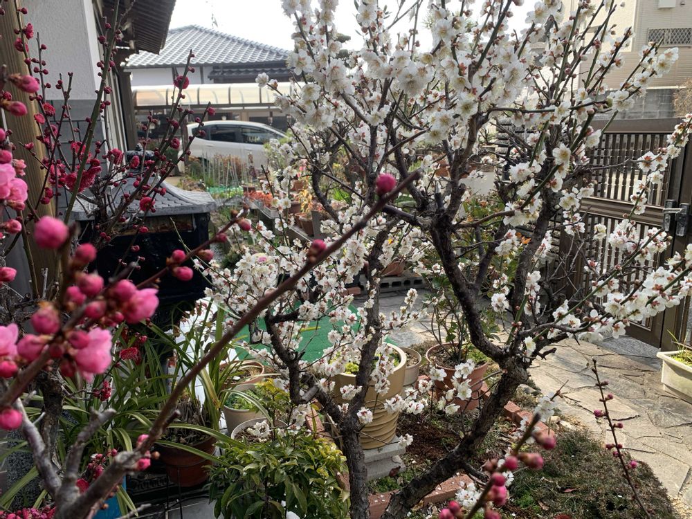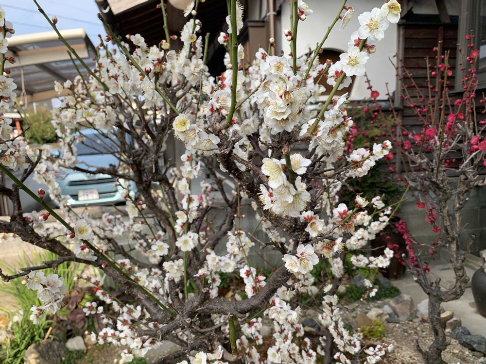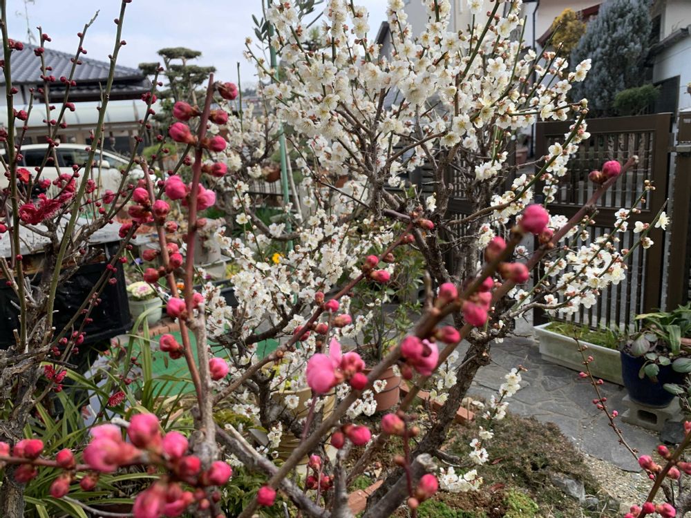 庭に大梅と思いのまま、五色梅、紅梅2種類の5本の梅の木を植えています。この時期、玄関先に出ると梅の花の香りが凄く良いですよ😄