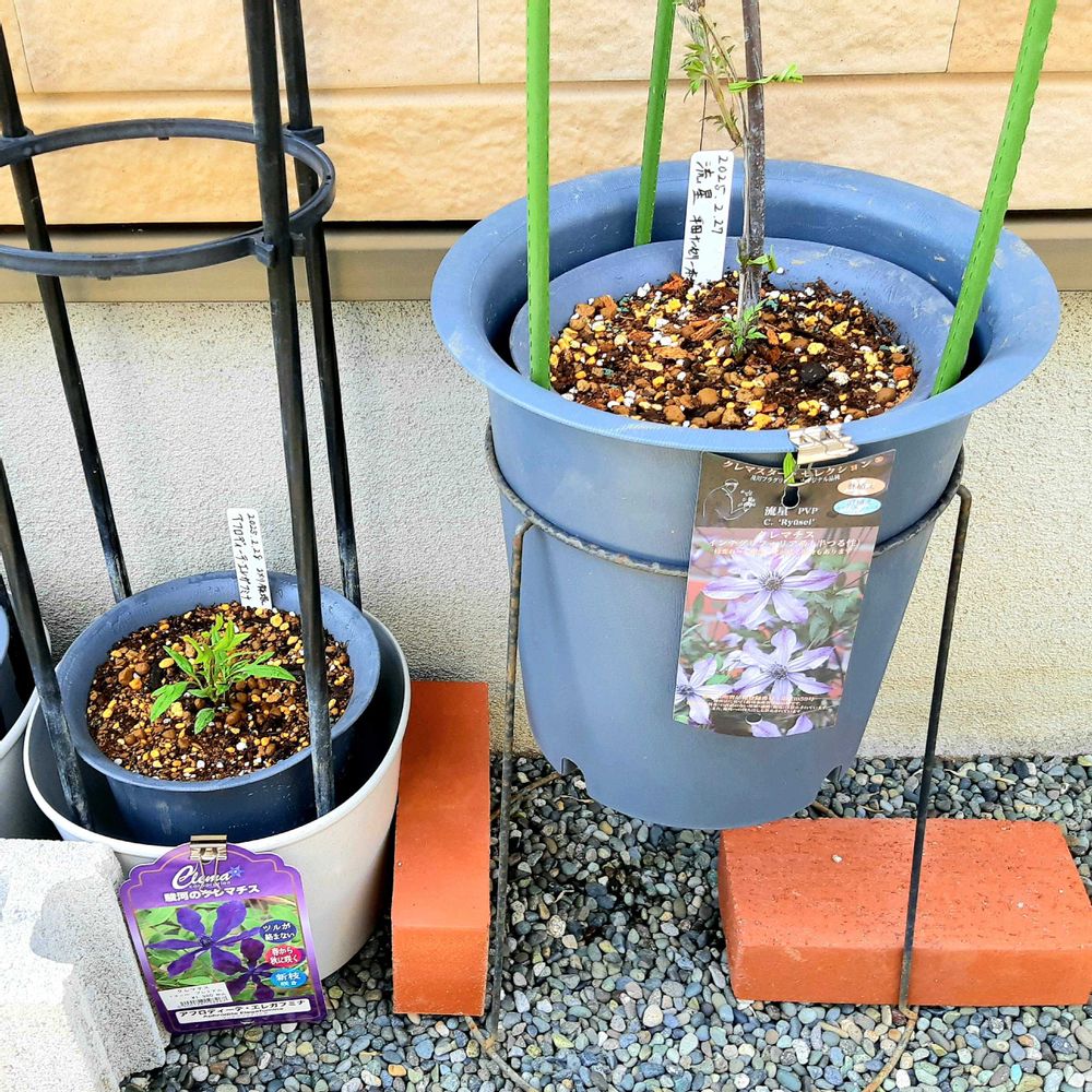 クレマチス、常緑以外は全部で10鉢すべて新枝咲きです。しかもインテグリフォリア系が育て易いので5鉢になりました。