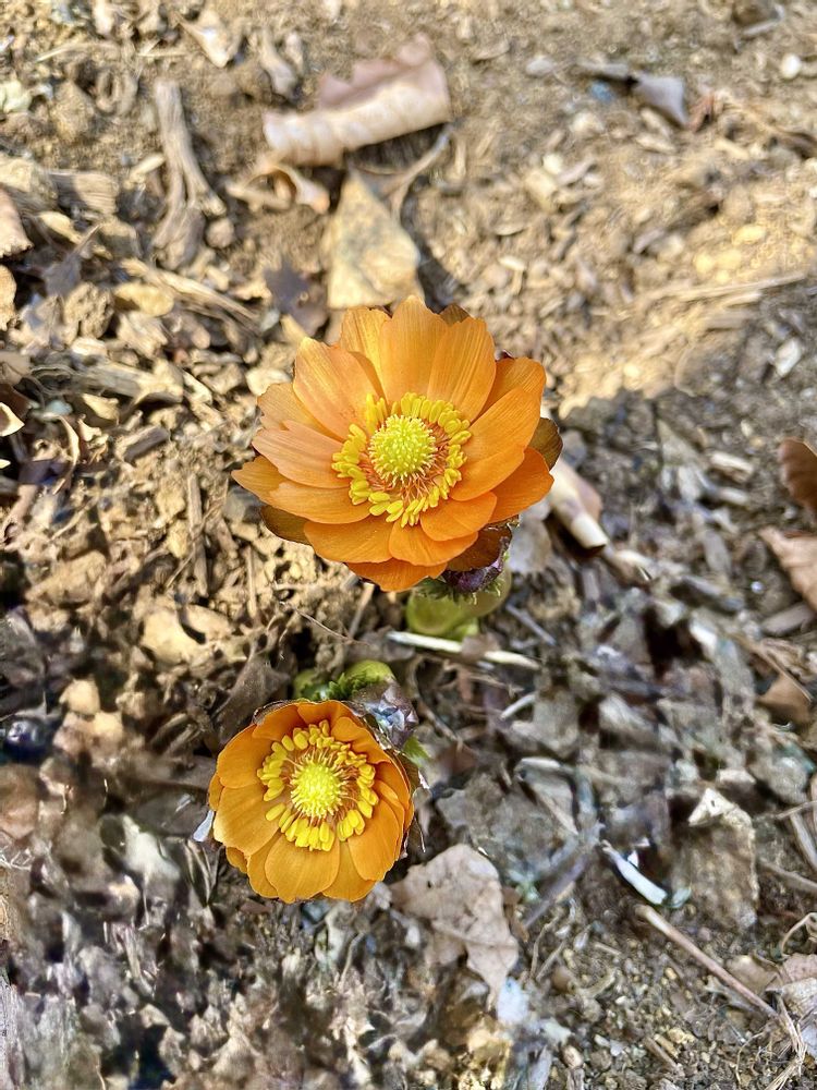 埼玉県の秩父山で見つかった紅色のフクジュソウです🧡