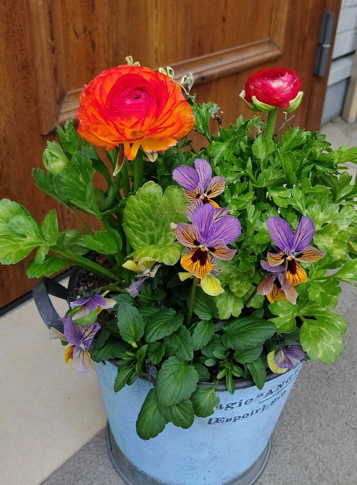 鮮やかな色のラナンキュラスが華やかな寄せ植えですね🧡ビオラのグラデーションも可愛いですね☺️