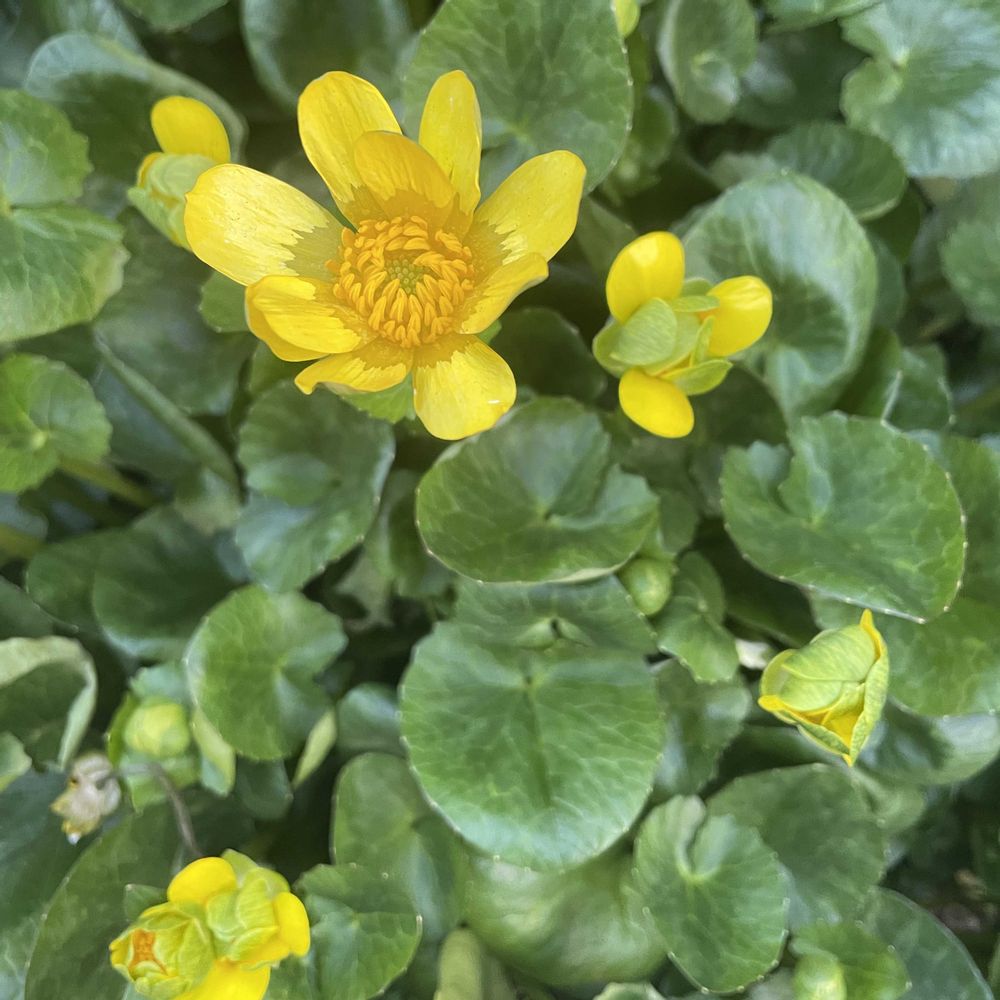 ツヤツヤのお花のヒメリュウキンカ🌼 咲きだしましたね🤗💓
