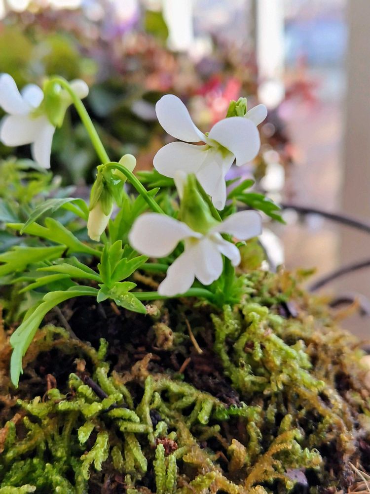 ➀➁ヒラツカスミレ白鶴がかわいく開きました♡紅ヒゴスミレもいっしょに植えたので揃って咲いてくれるといいな😊