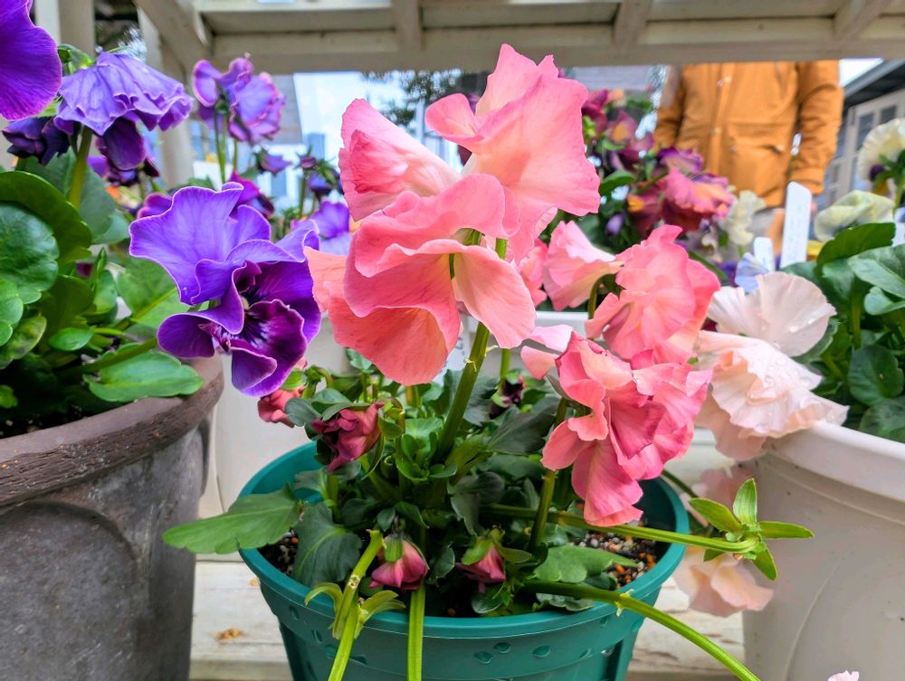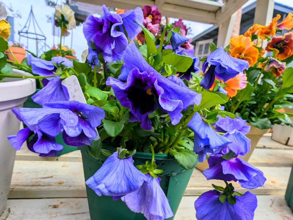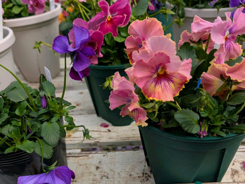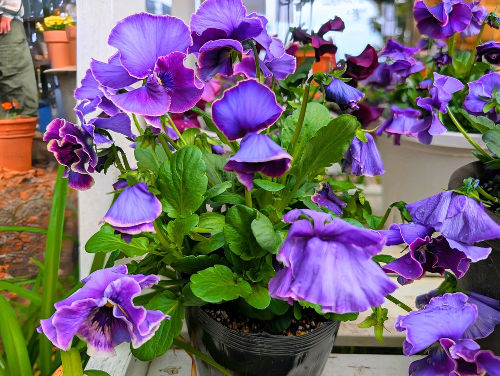 パンジーサイズでウェーブタイプが多数育成中とのこと。色合いも相まって独自パンジーが誕生してます。