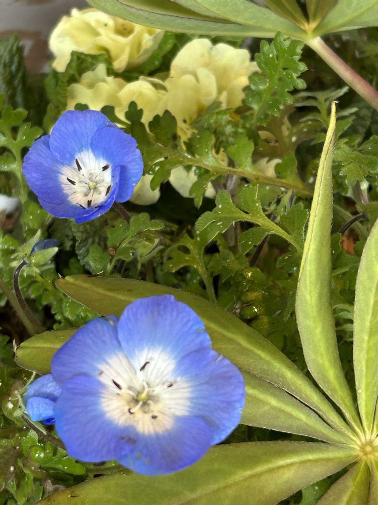 ネモフィラとジュリアン4つずつで縁をぐるり🌸
