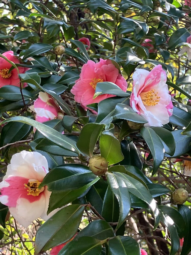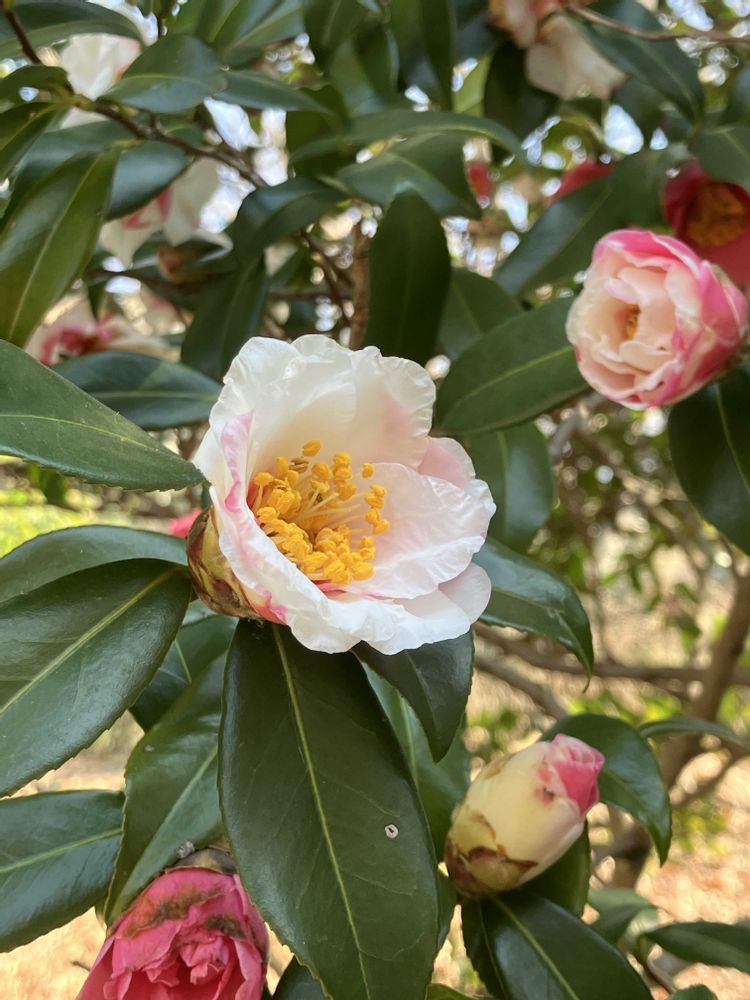 梅の花を見に町田 薬師池公園へ行きました。梅の花の手前でこんな可愛い椿に出逢い