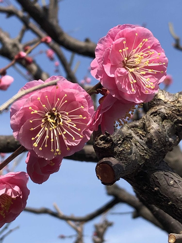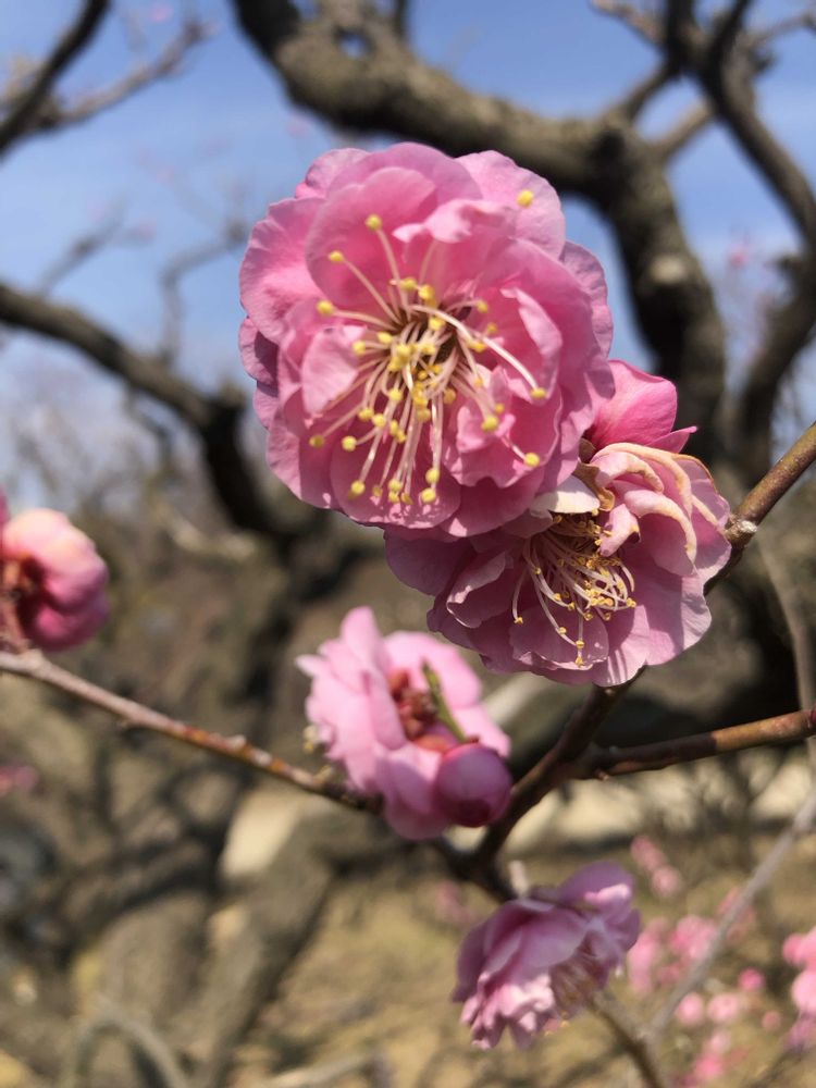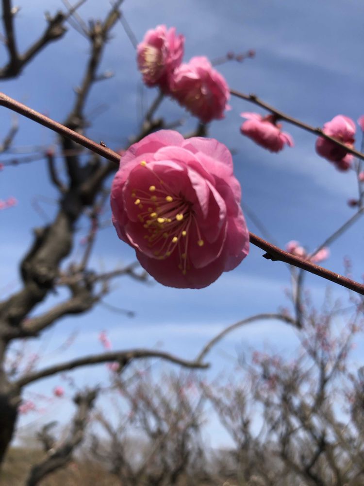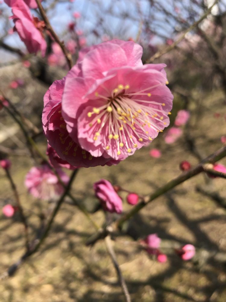 万博公園の梅林にて、ピンク色の梅「八重寒紅」をパチリ!📸🌸😊😄🌞✌️