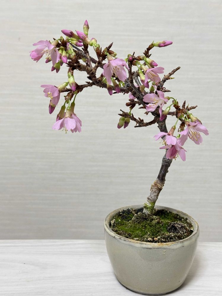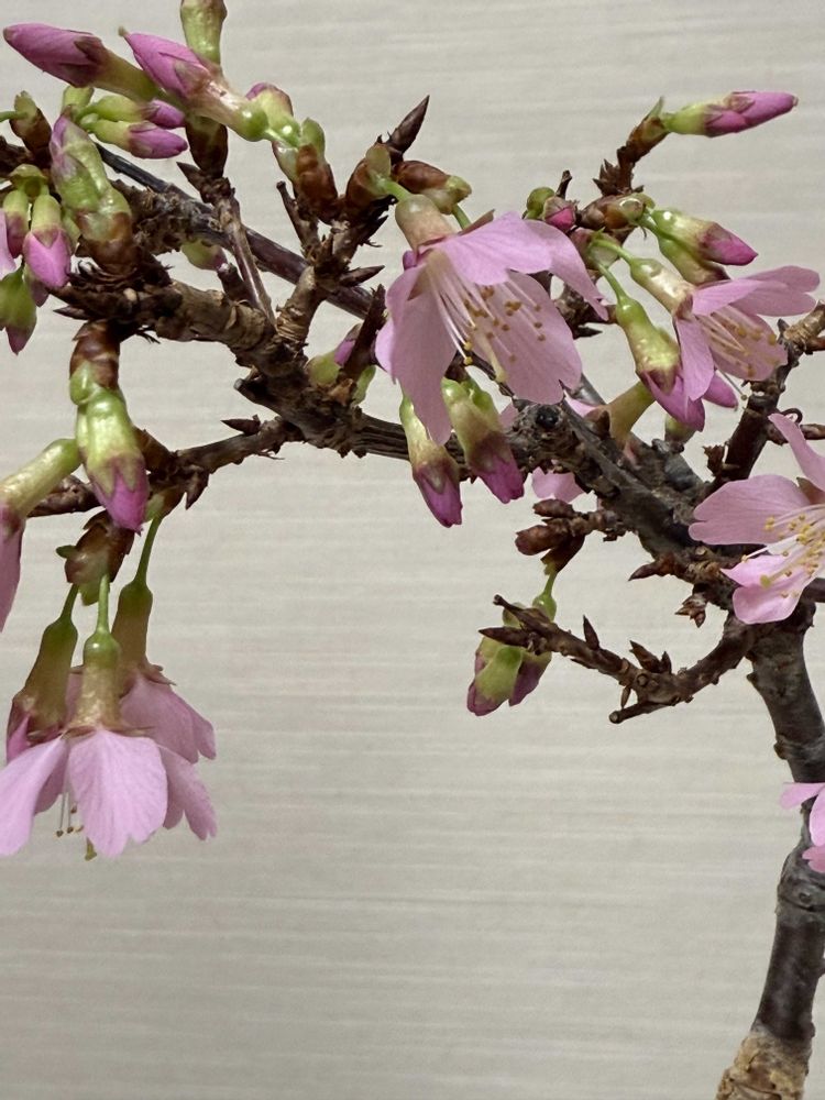 オカメ桜が外で蕾が出て寒そうにしてたので😃部屋に入れてあげたら開花し始めました🌸😆