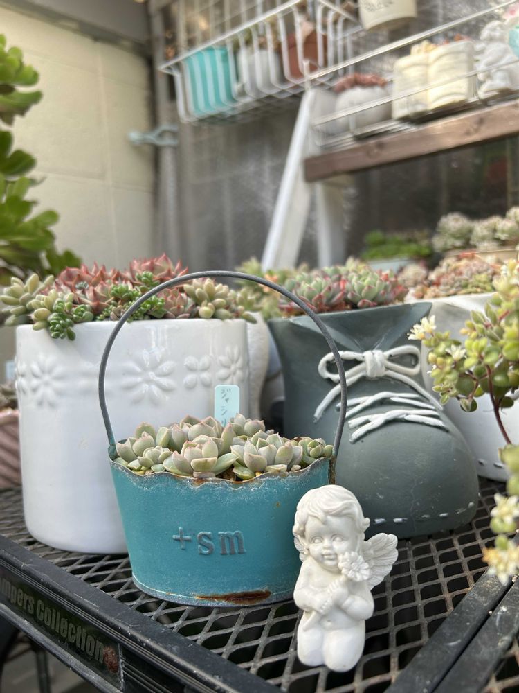 青い鉢、ネットで買ったら思ったよりミニサイズだったけどね〜😅でもお気に入り🥰