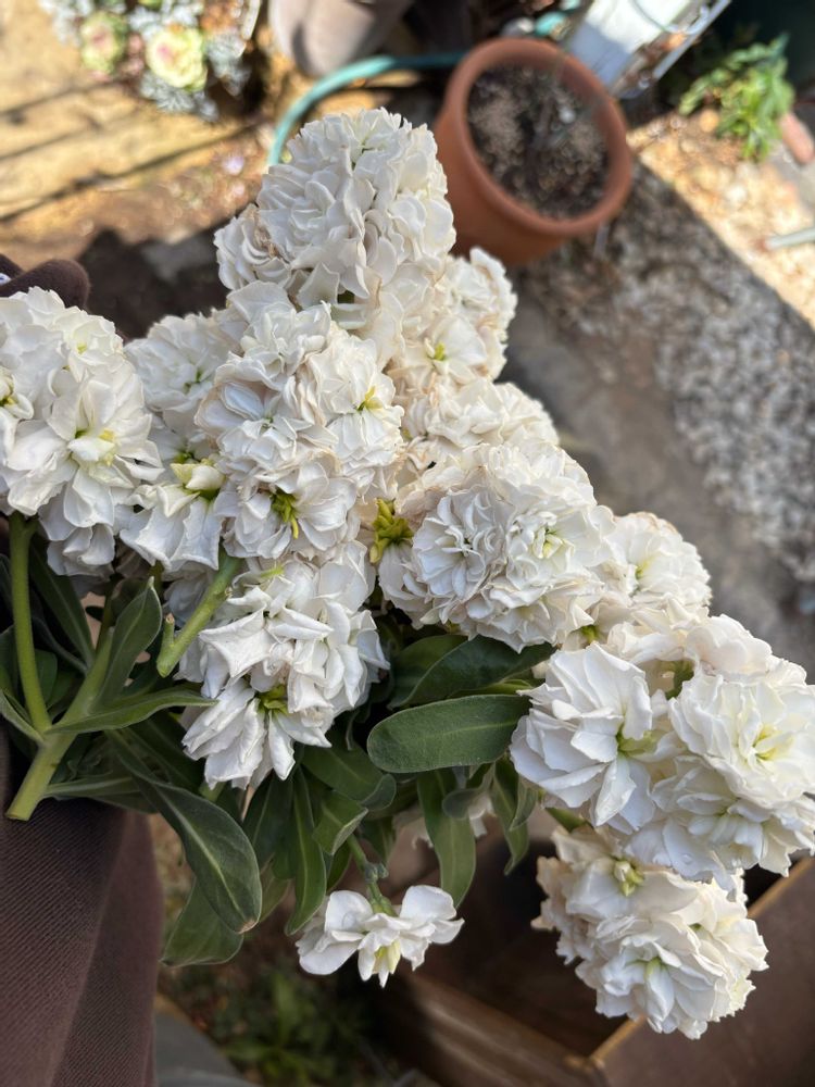 ストックってあまり植えたことなかったけど、こんなに香りがいいなんて知らなかった、今日は思い切って花芽の上で切り戻して、家で楽しむことにしました。