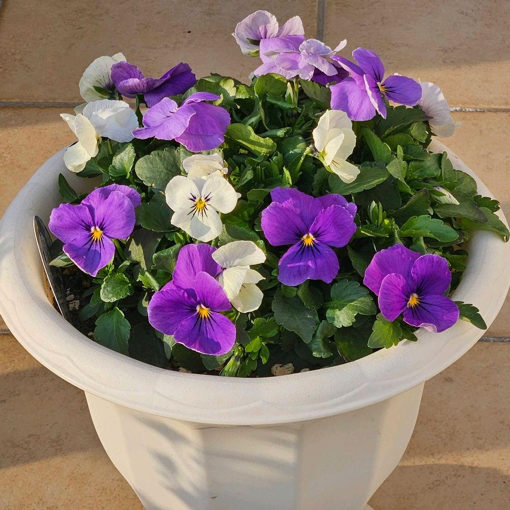 白から薄い紫色から濃い紫色に変化するビオラです😃