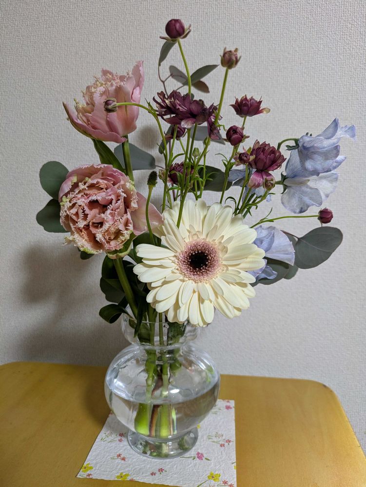 ガーベラ,スイートピー,八重咲きチューリップの投稿画像