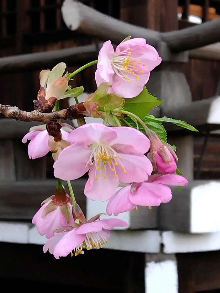 氏神様の河津桜本堂の所で枝を広げ綺麗に咲いて🌸🌸🌸
