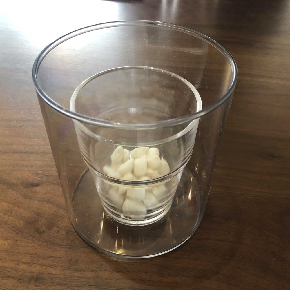 大小の器を重ねてドーナツ型の空間を作り、ミスカンサスで装飾