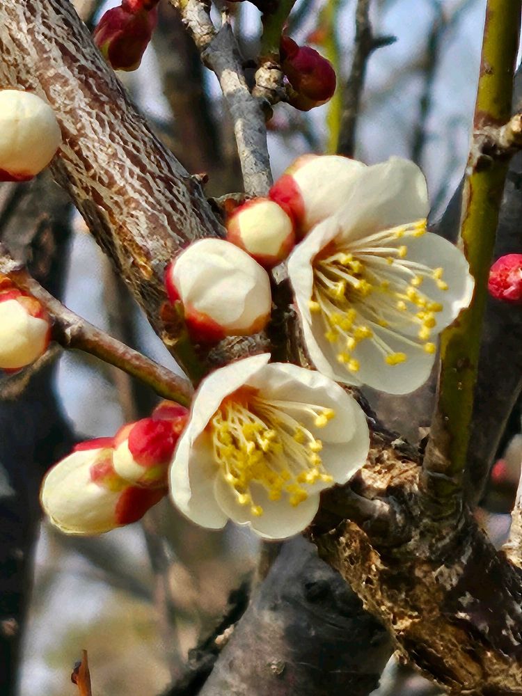 陽気に誘われて、いつもの散歩コ-スに、白梅も素敵に咲いてきてました🤍