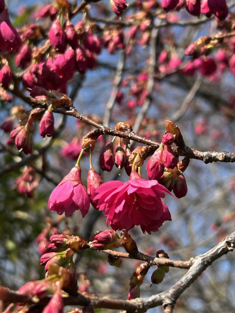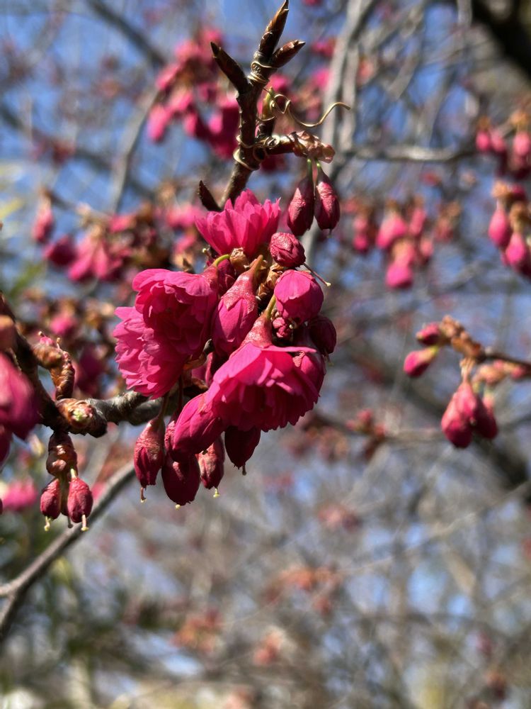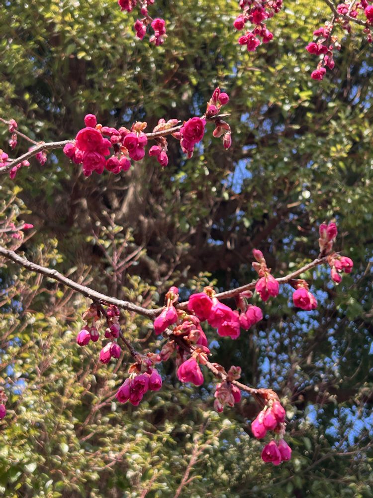 ところで、松陰神社さまの桜、公式インスタなどでは緋寒桜と書いてあるのですが、神社の木にはカンヒザクラと書いてあるんですよね〜。