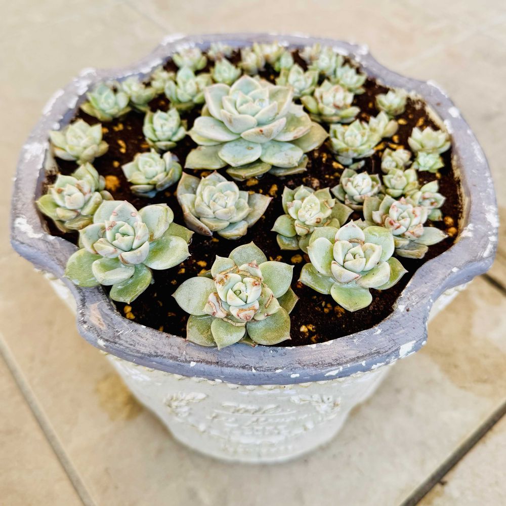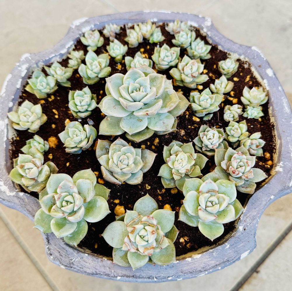 イマイチ気に入らなかったw葉挿し白牡丹丼をやりかえました 土を変えて平らにして成長後を考えて隙間を あったかくなってきてぐんと大きくな〜れ 虫食いも綺麗になってね〜
