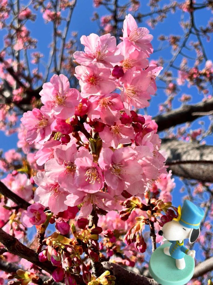 お天気が良く暖かったから他の🌳にも🕊️がたくさん鳴いていたので音楽隊(1人)スヌーピーさんで参加します☺️