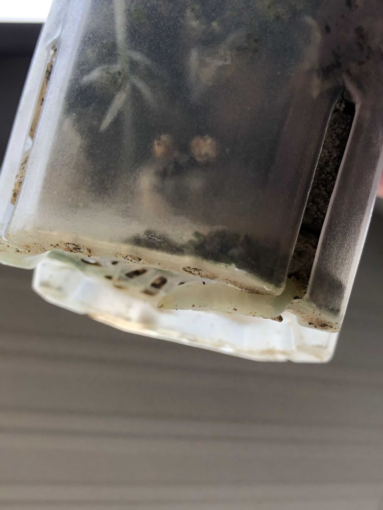 以前、GSフレンドのモモンさんから頂いたミッドナイト錦の鉢が傾いてたから何でだ?と見てみると根っこがスリットから飛び出してたので双頭を分けて植え替えようとしたがとてもじゃないが離れる様子もなく…