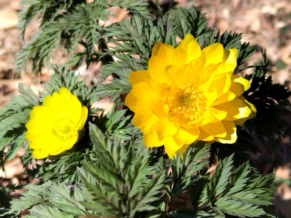 フクジュソウは日向と日陰の両方に咲いていましたが、やはり日向に咲くフクジュソウのほうが株も大きく花数も多く見ごたえがありました✨
