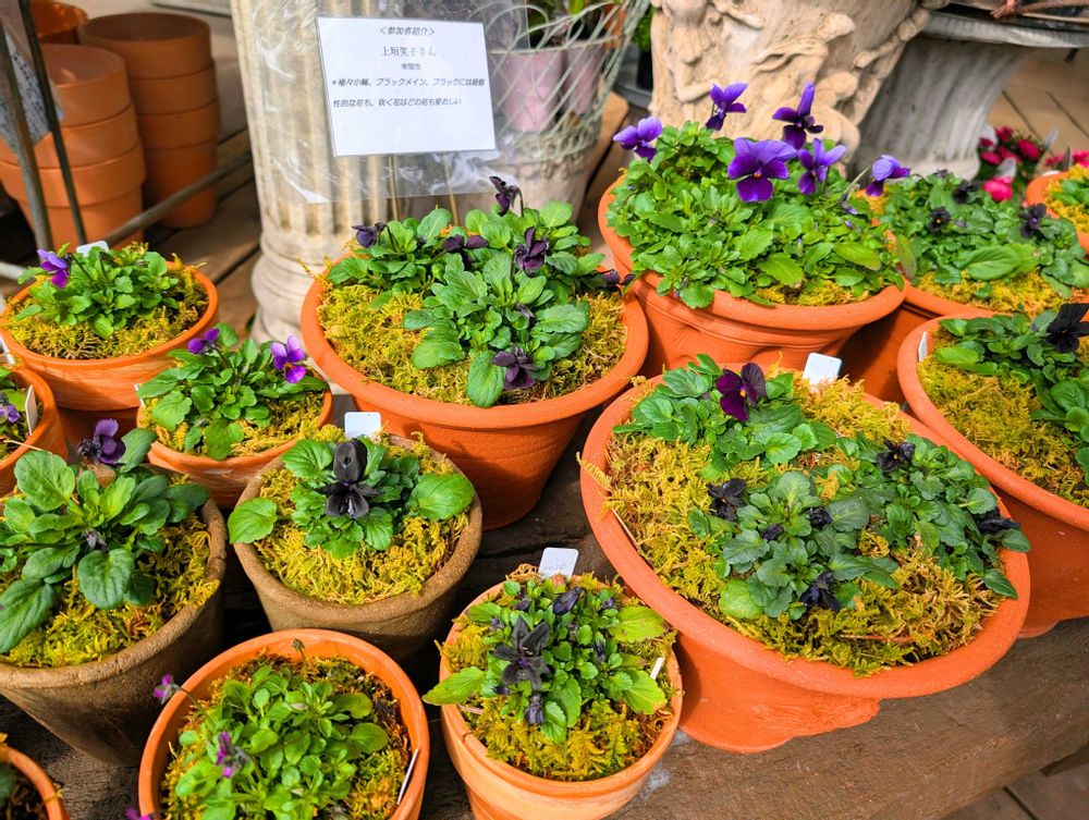 極々小輪のブラック系のビオラをメインに育種されている方。黒の中には個性的な個体も多くあり、1色にこだわることで新たな可能性を開拓されているそうです。