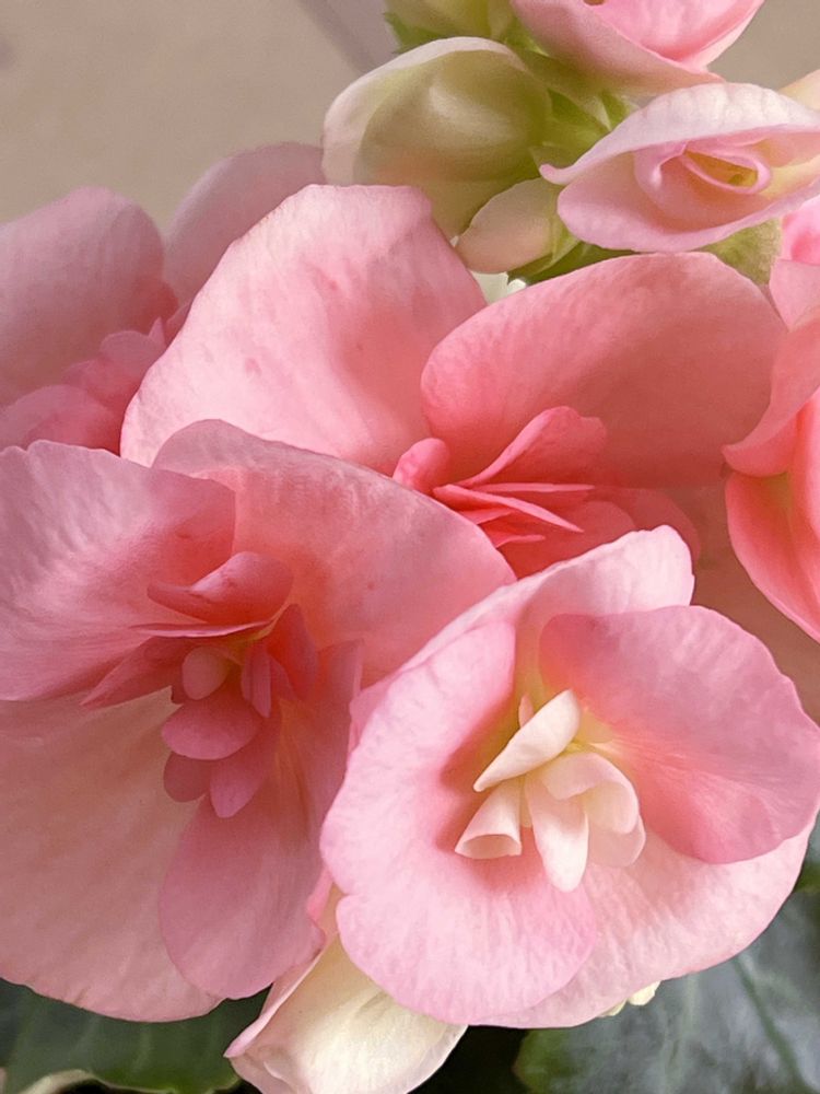 淡いピンク色の彩りと、キュートな装いで、癒しのひとときを✨🎁✨プレゼントしてくれる、アクティブなという、花言葉を持つ、ベゴニアの華やぎ素敵です(^o^)v🎵