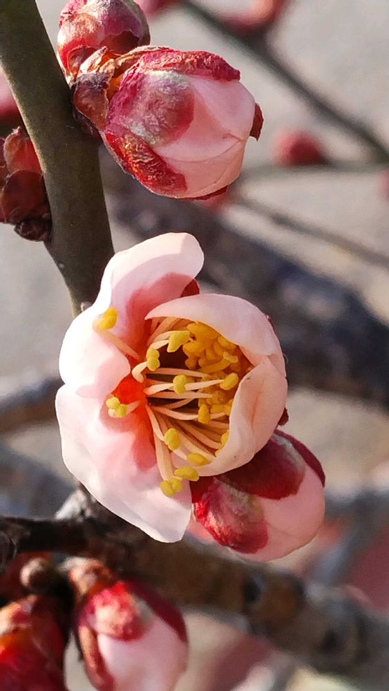 数日間日中が暖かかったので、待ちかねたように公民館の梅が咲き出しました