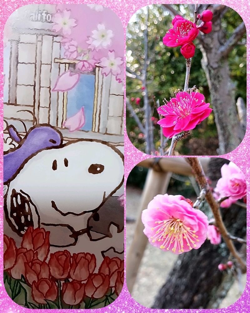かわいいスヌーピーと梅の花❣️😍