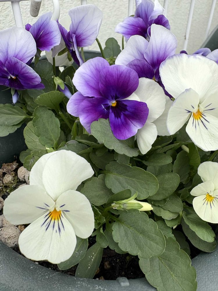 去年取ったタネから植えたビオラが、いい感じでもこもこしてきました!
