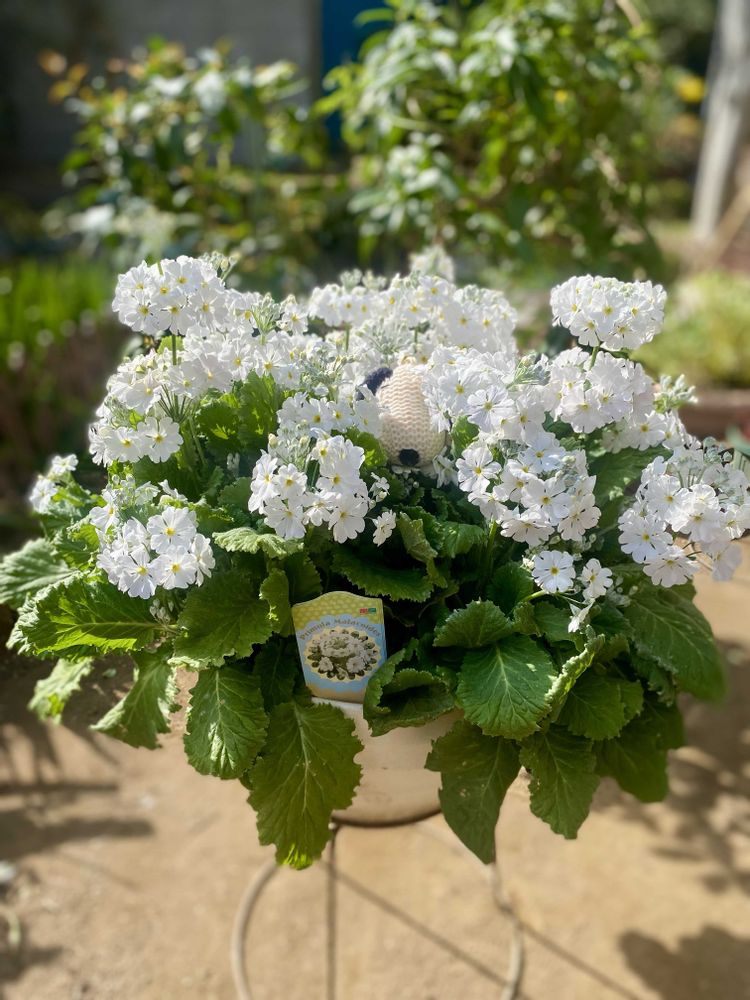 プリムラは苦手ですが、この白のマラコイデスだけは、毎年良く咲いてくれるので、必ずお迎えしています。