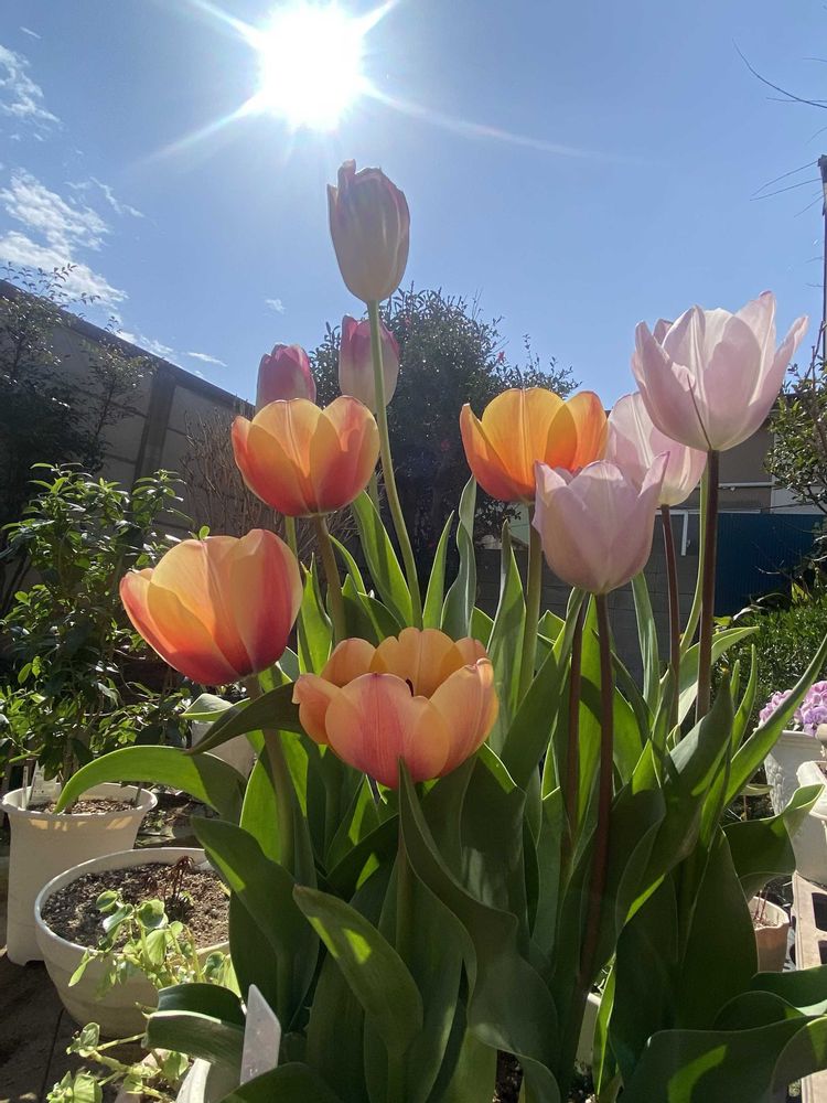 アイスチューリップと青空のコラボは最強よね✨ 花持ちが良いので、ながく楽しめていいですね〜🥰