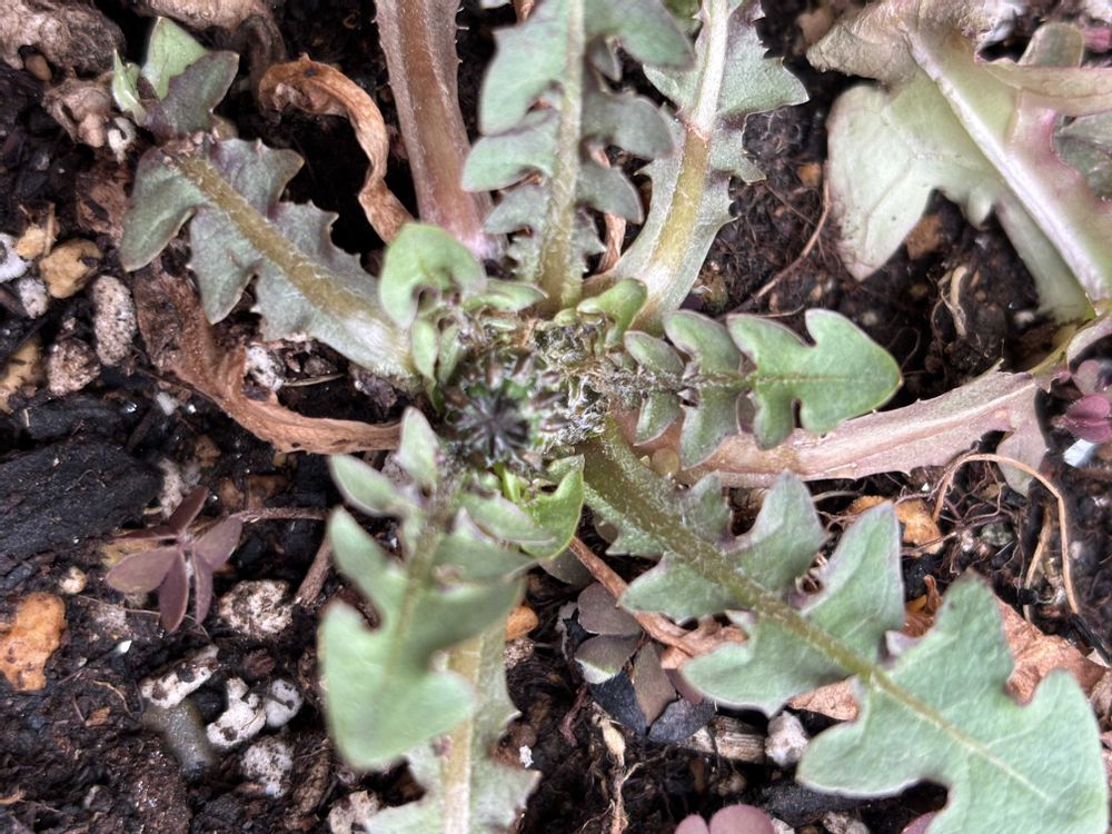 静岡のGS花ともさんからいただいたシロバナタンポポ。まだまだ小さいのですが、真ん中におや⁉️蕾かな⁉️