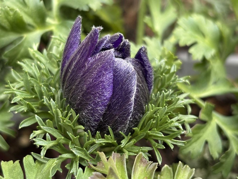 ②は、蕾つながりで。濃い紫のアネモネさん。2番目の蕾がいつのまにかできてました‼️
