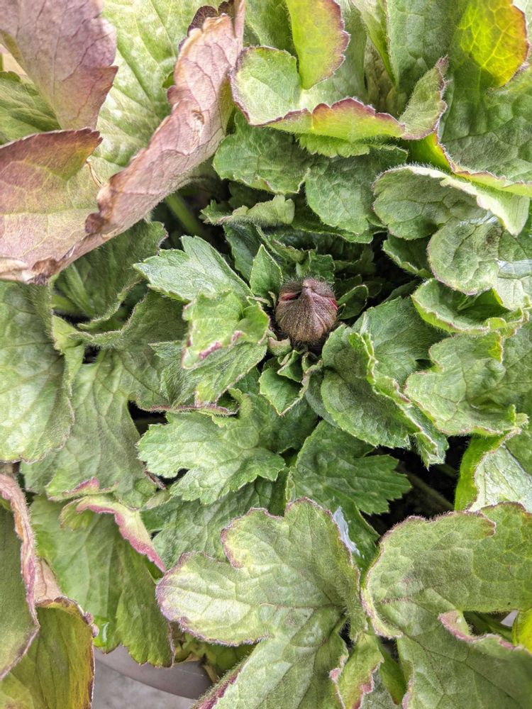 秋に鉢増しして、2階のベランダで冬越し中。ようやく蕾が見えてきました。