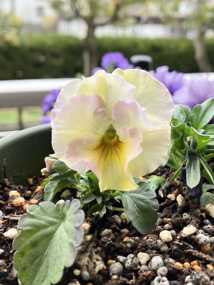 9月に種まきしたビオラ。8月のよりかなり小さいままで咲いてます。全体的に黄色っぽい。