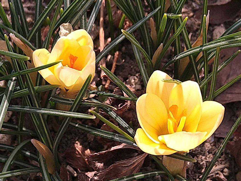 昨日は気がつかなかったけれど小さいクロッカスの花が咲きました🧡🧡
