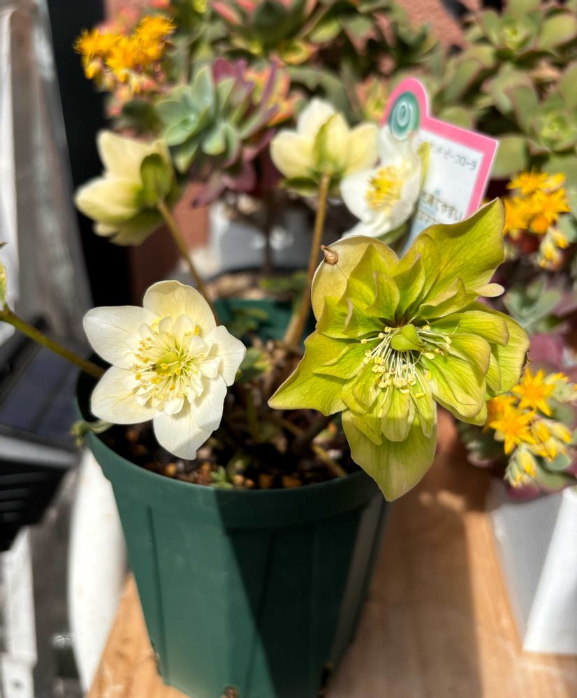 ❶クリスマスローズダブルファンタジー最初に咲いた花が白から黄色そして今度は緑色に変化してます