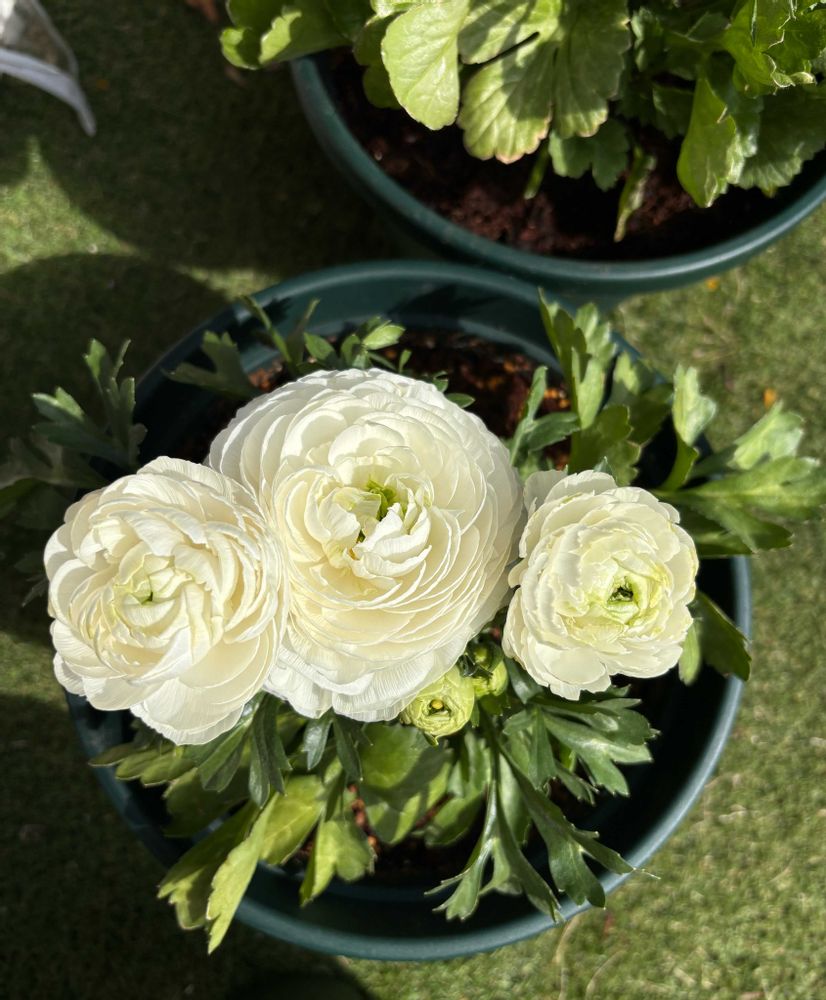 ❷ラナンキュラスの白 やっと植え替えしました 下葉が黄色くなって来たので焦りました