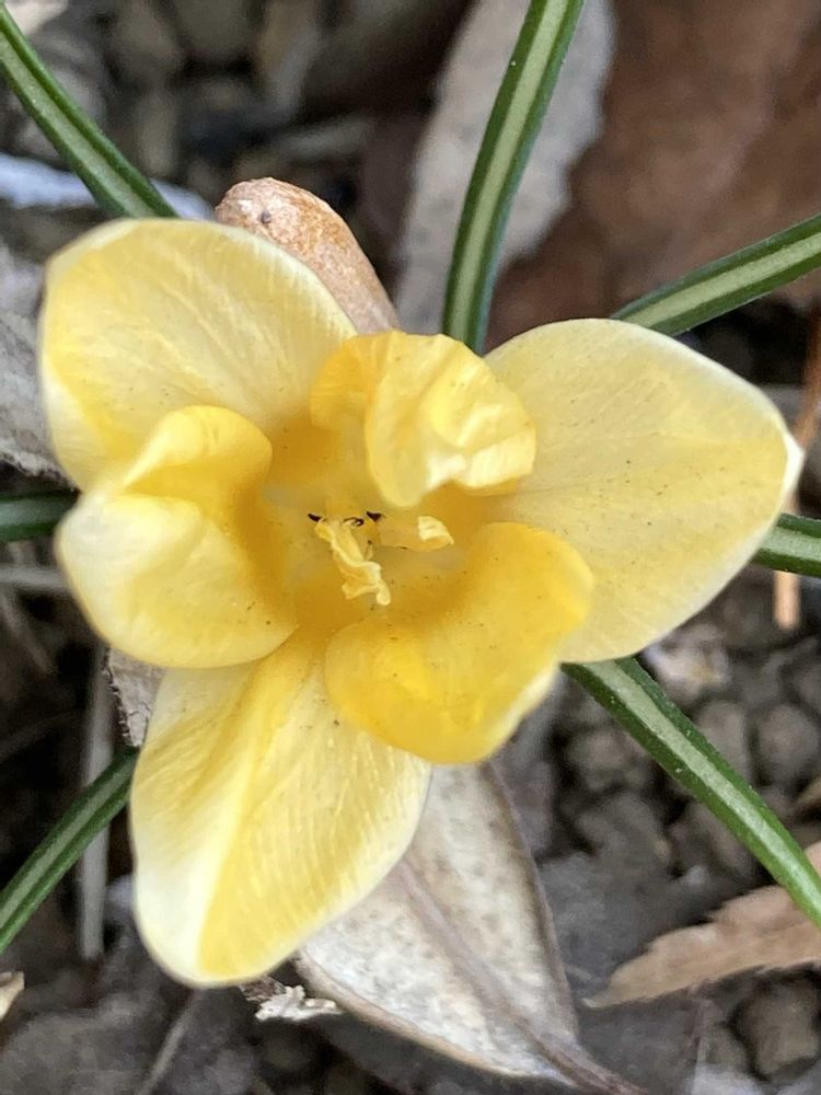 道端のクロッカスが花を咲かせています🟡