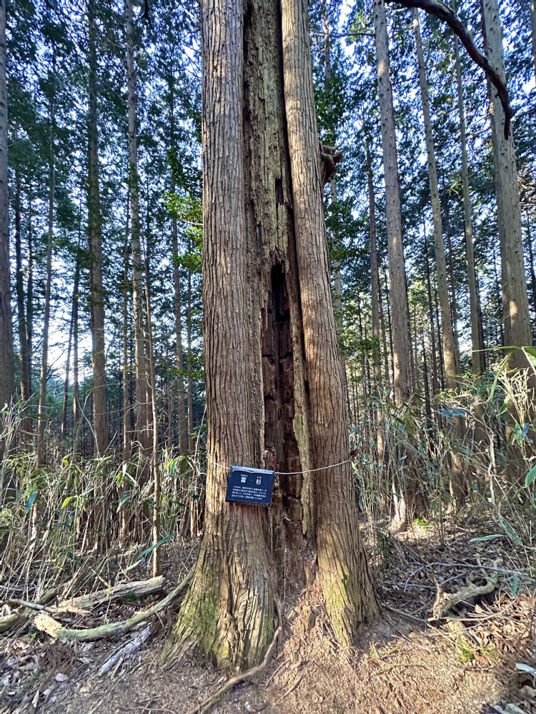 この杉、雷杉って言うんだって。小話30年代に落雷にあって二つに裂けてしまったらしい。