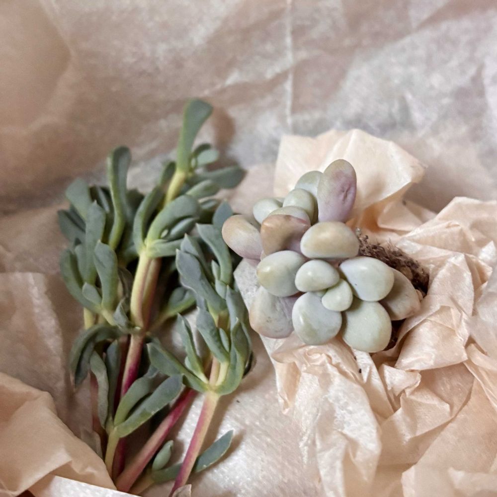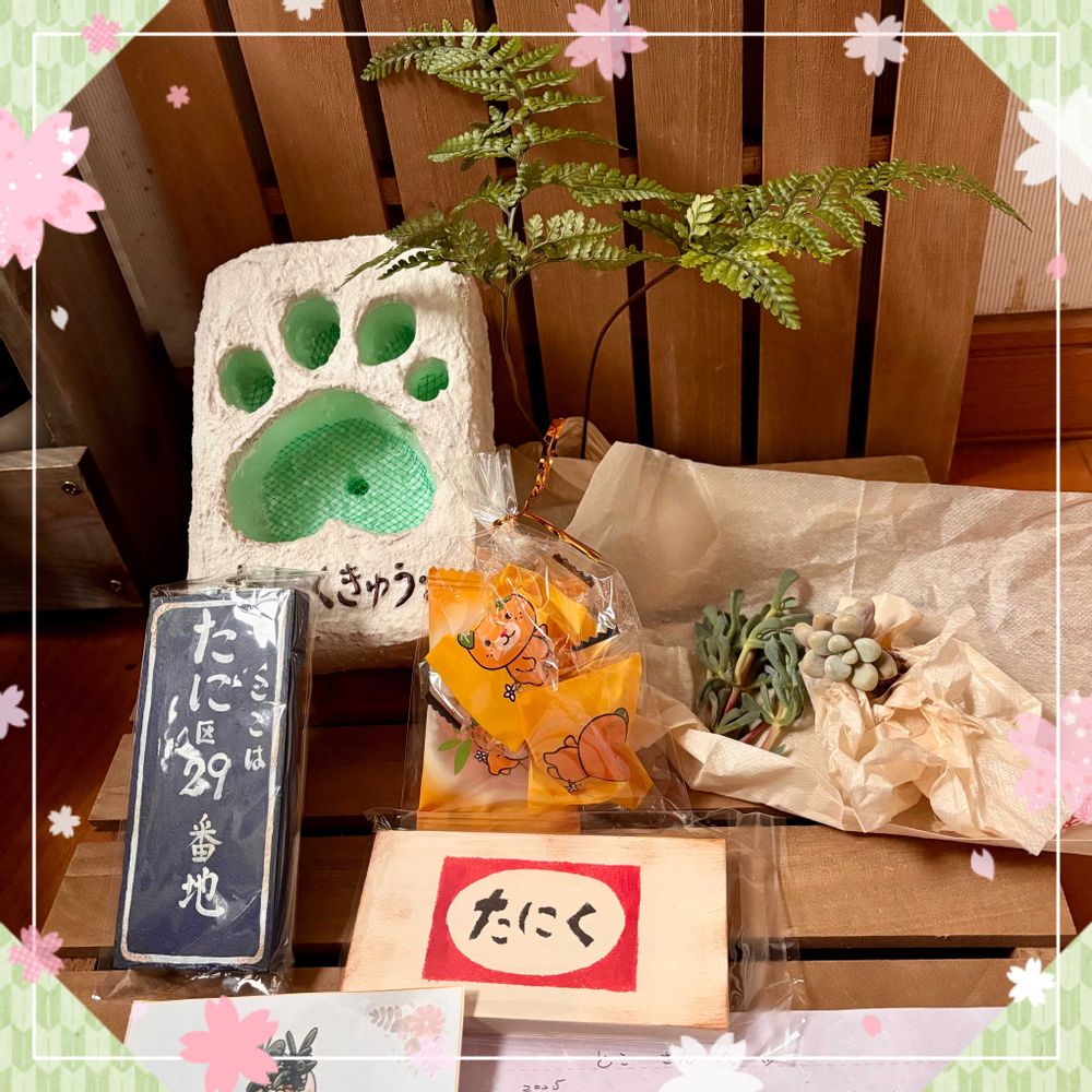 るるさんからたに区プレートやたにくきゅう鉢、多肉、トキワシノブ、お菓子などの素敵便が届きました🎁