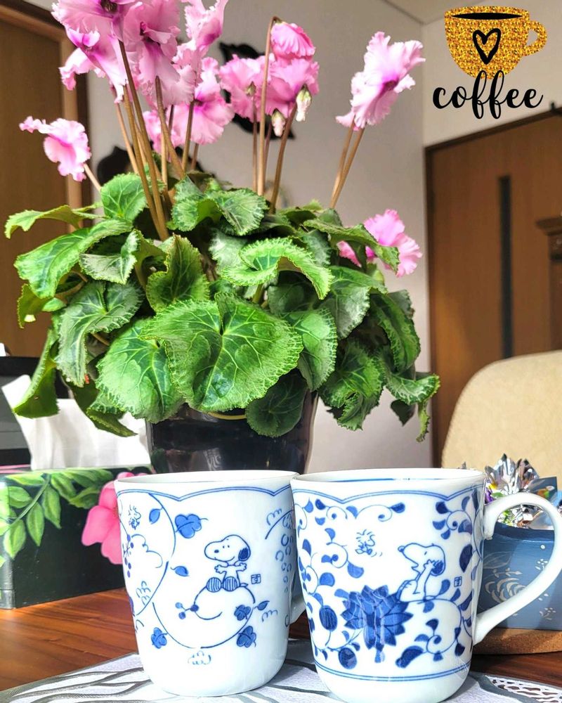 シクラメンさんを眺めながら…スヌーピーのペアカップで美味しいコーヒーを…☕☕