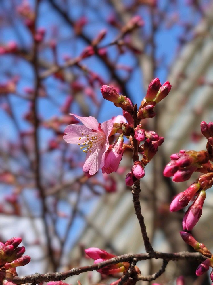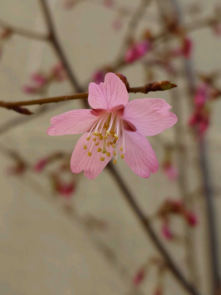 とうとう、この陽気でオカメザクラが1輪…2輪…と咲き始めました🌸🌸