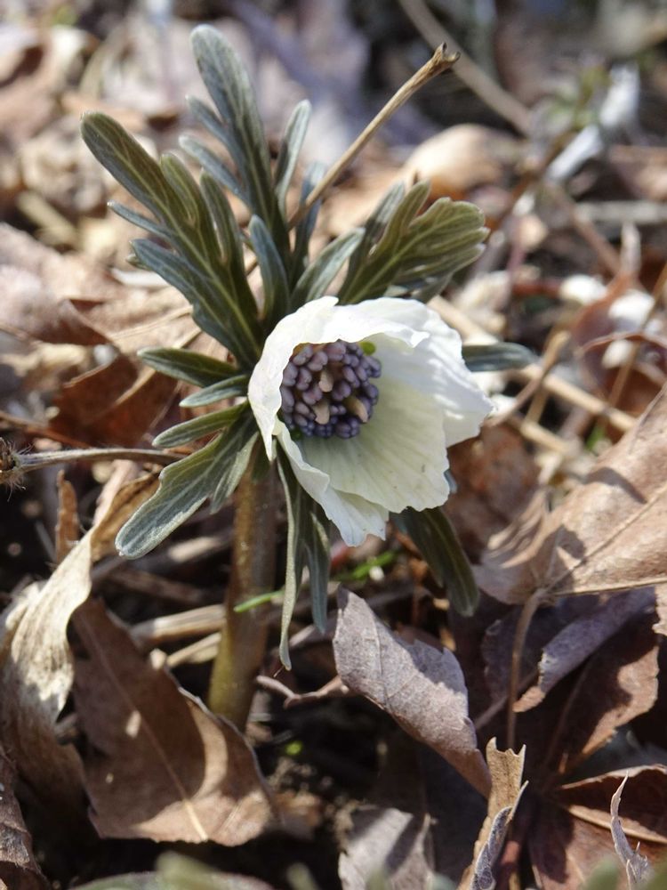 ⑤花茎が緑色だから、過去に見た青軸のセツブンソウ?かと思いましたが、雄蕊が白くないので、これは普通のセツブンソウですね!