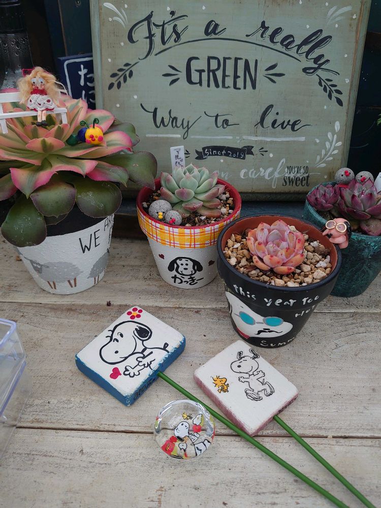お花もピータンちゃんもスヌーピーも